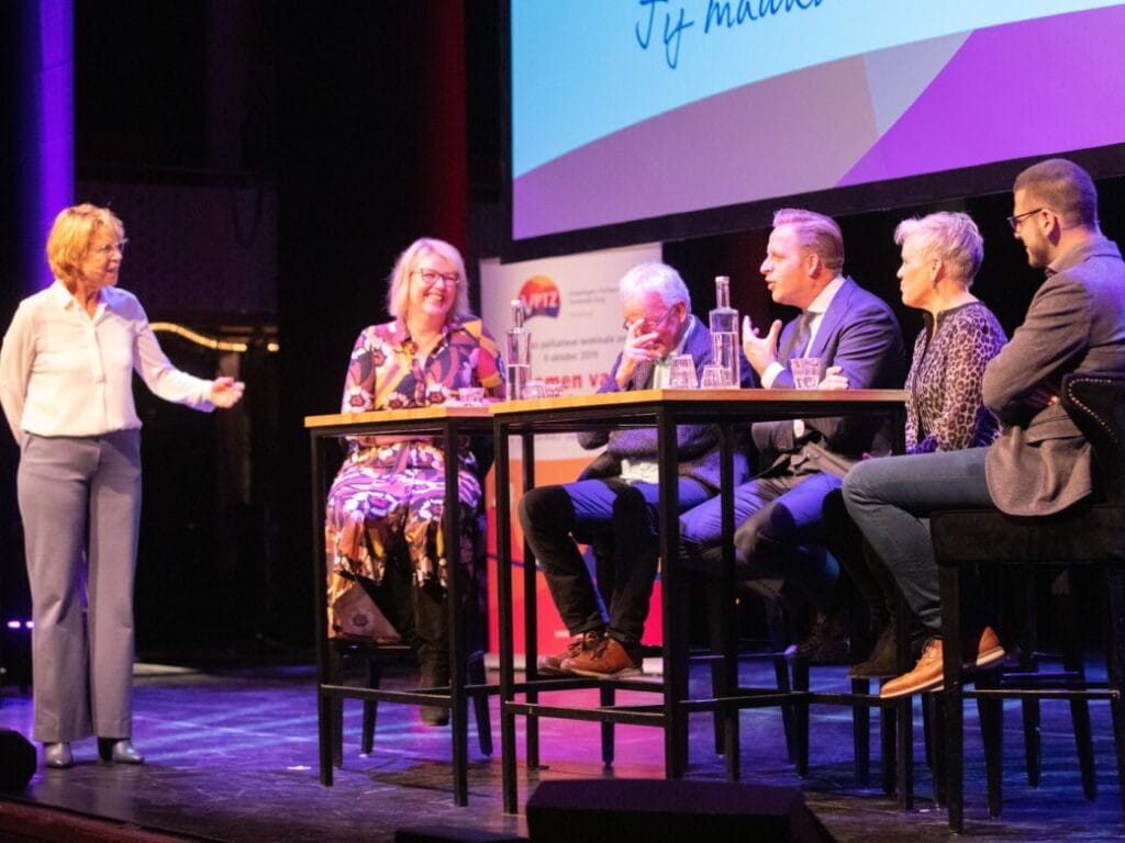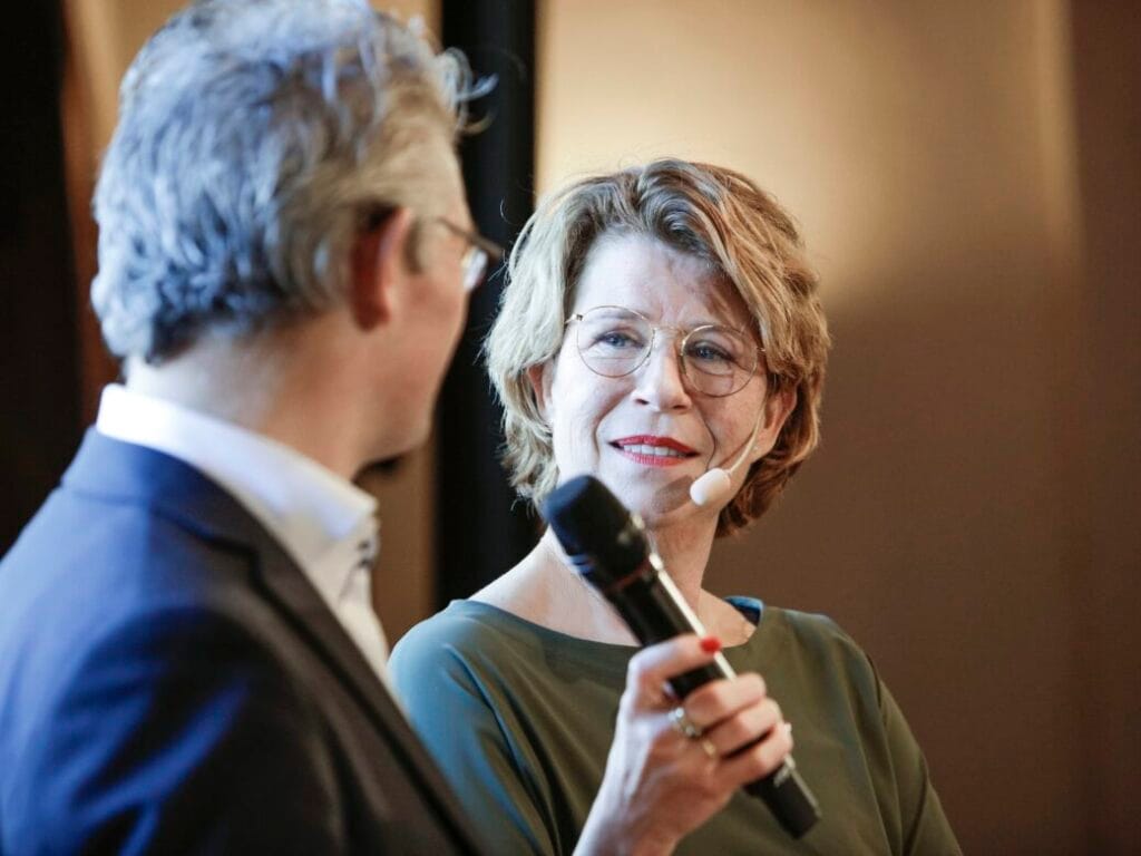 Als dagvoorzitter denkt Marion mee over de vorm van de bijeenkomst. Ze stelt zich op als gespreksleider tussen publiek en organisatie en kiest vaak voor vraaggesprekken boven presentaties.